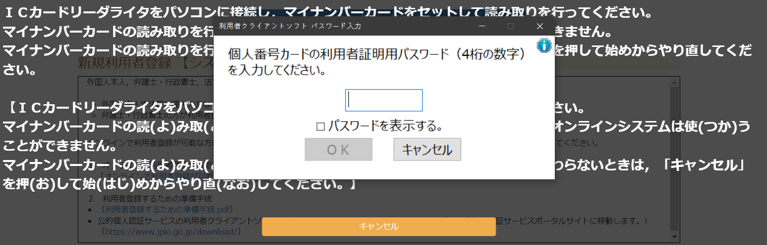 이용자 정보 등록에는 마이넘버 카드, IC카드 리더기, JPKI 프로그램 등이 필요합니다.