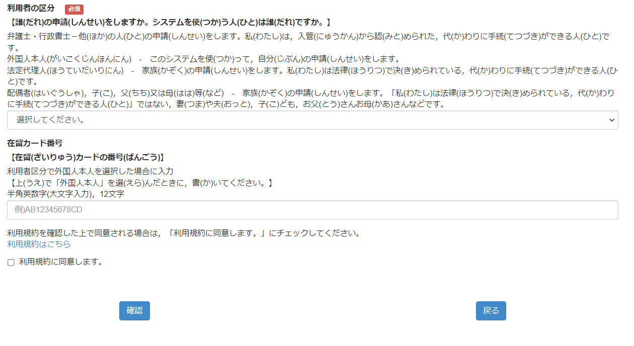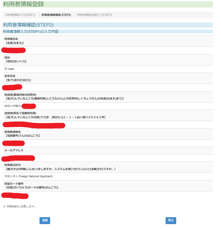 ③ 필요사항을 입력하고 이용약관을 읽어주세요. ※이름이나 성별 등은 마이넘버 카드 정보가 자동으로 입력됩니다.